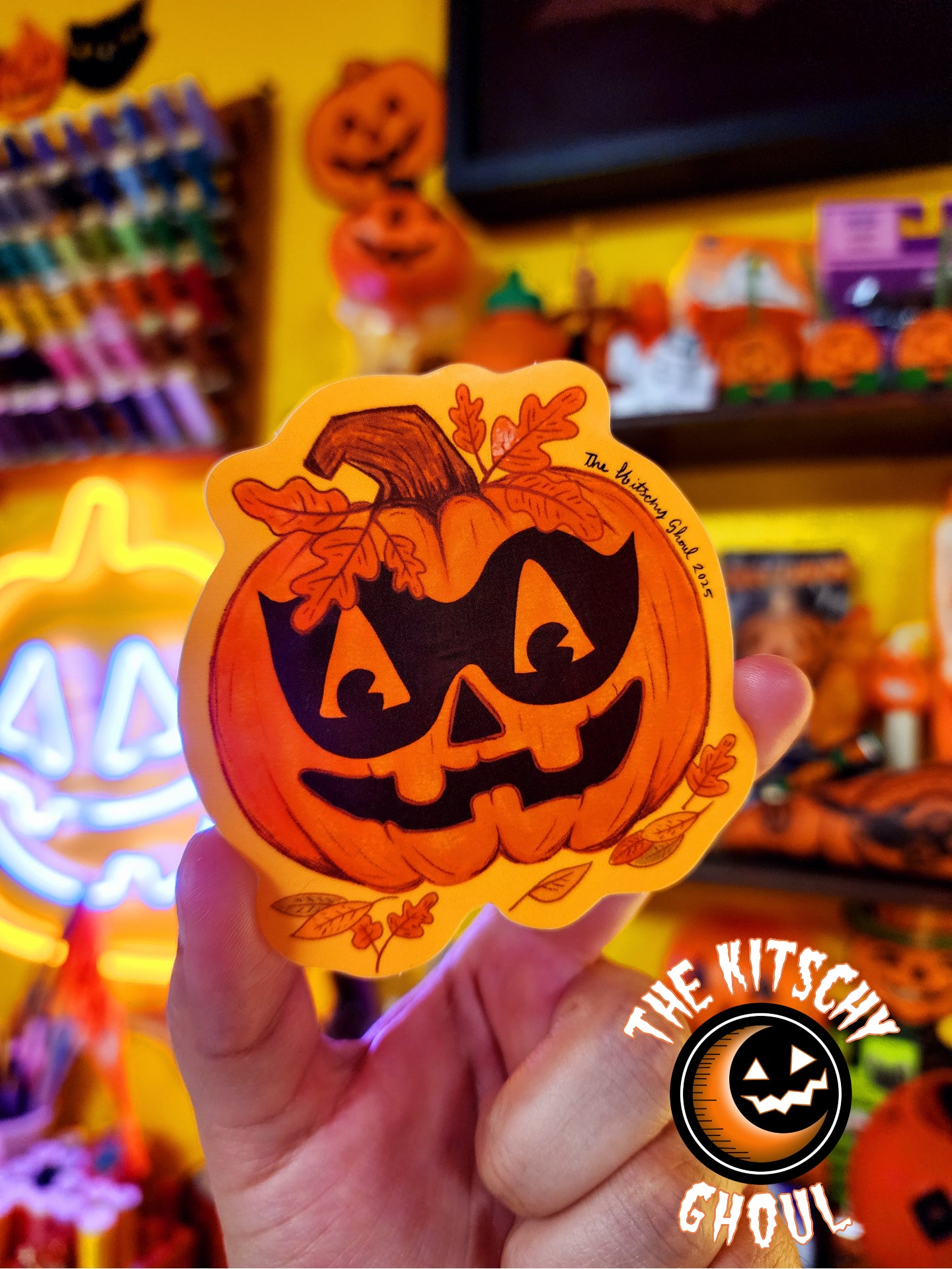 This sticker was given for July 2025 Patreon reward. It features a pumpkin bandit drawing, which was in turn inspired by a vintage halloween pumpkin bucket.